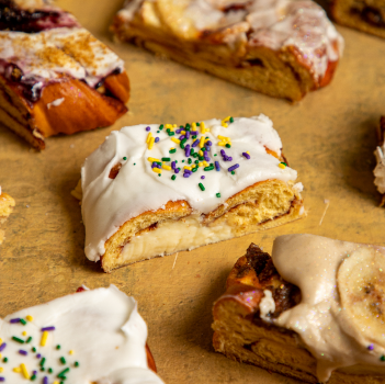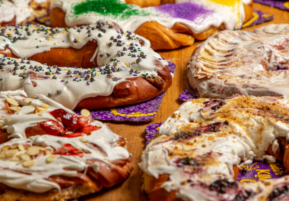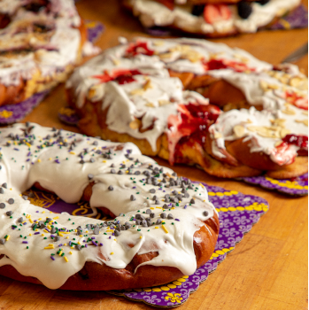 Choose from traditional Mardi Gras King Cake favorites like cinnamon, strawberry, or cream cheese, or try one of our non-traditional cakes like the Caramel Kringle Cake or Praline King Cake. Pop in and get your fix. We offer weekly specials during Mardi Gras season featuring specialty flavors like Maple Bacon Praline and Bananas Foster.