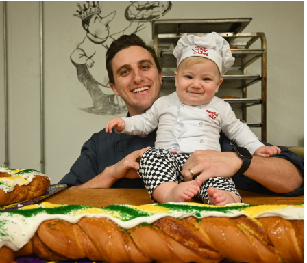 Chef Josh has been learning all the ins and outs of the bakery business directly from his dad, Chef John, for many years now. He works directly with crew, and oversees the daily prodcution making sure our king cakes are made to perfection that you all know and love.